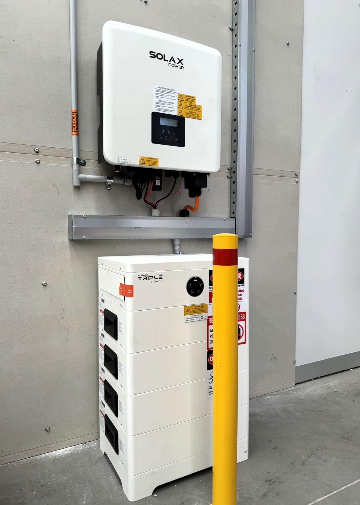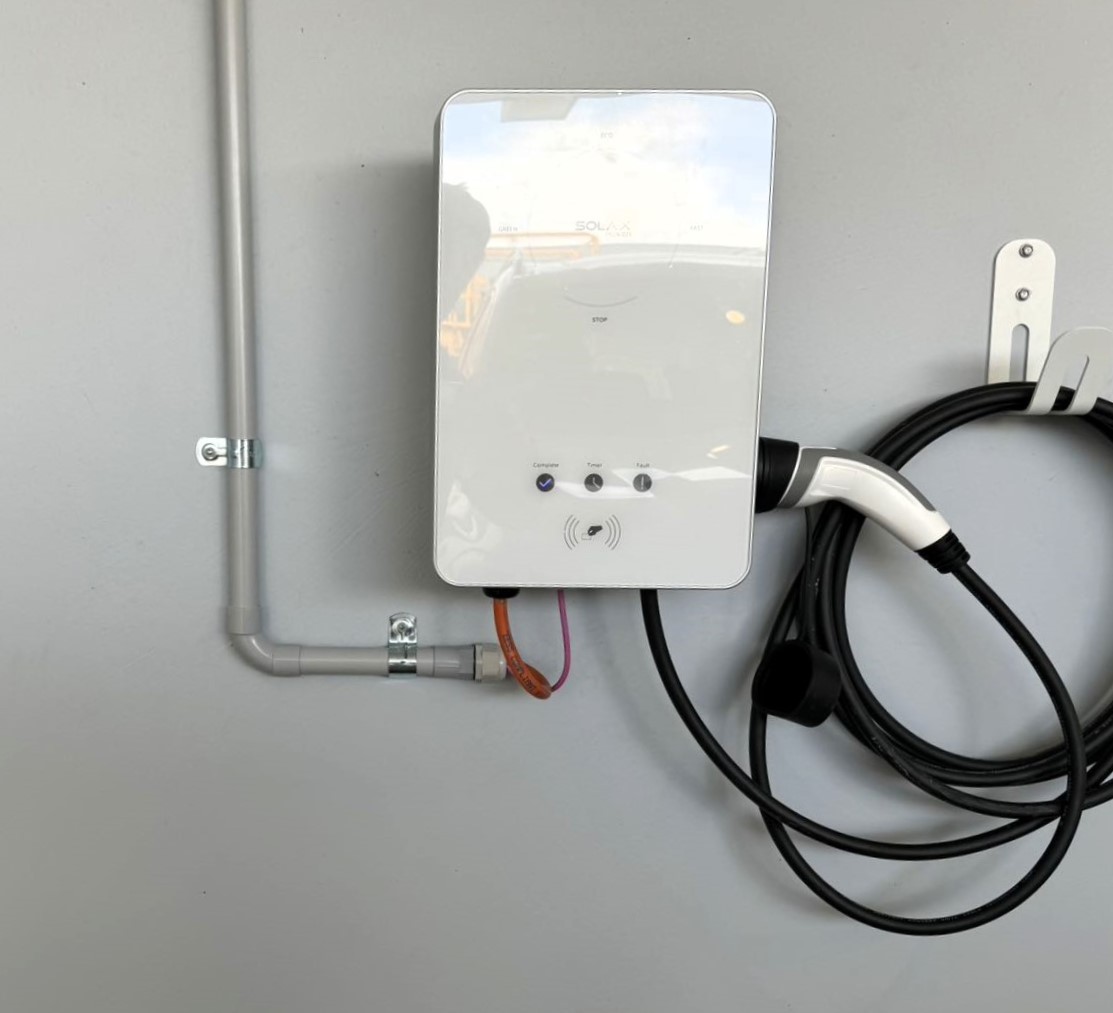 This installation at Raystech’s VIC warehouse features a SolaX X3 Hybrid G4 15kW inverter paired with 14.4kWh of HS36 battery storage and an X1-7.5kW EV charger, providing a complete solar-plus-storage and EV charging solution.